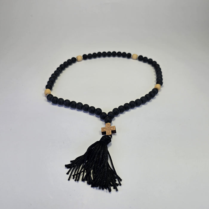 Orthodox Prayer Rope – 55 Beads with Wooden Cross & Tassel - Made on Mount Athos